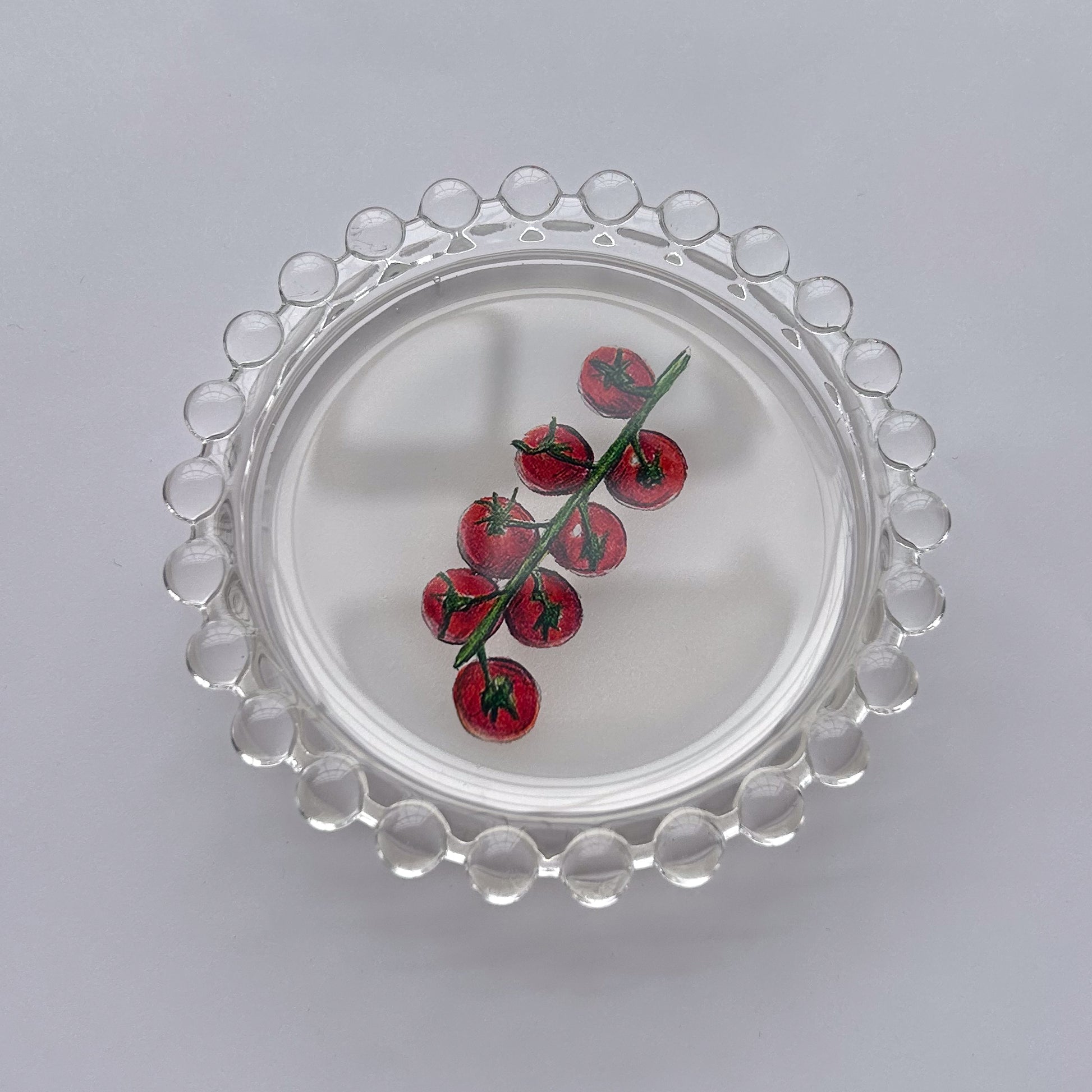 Original illustrations hand-set into 4" glass dishes with food-safe epoxy resin. Made in Brooklyn, NY.